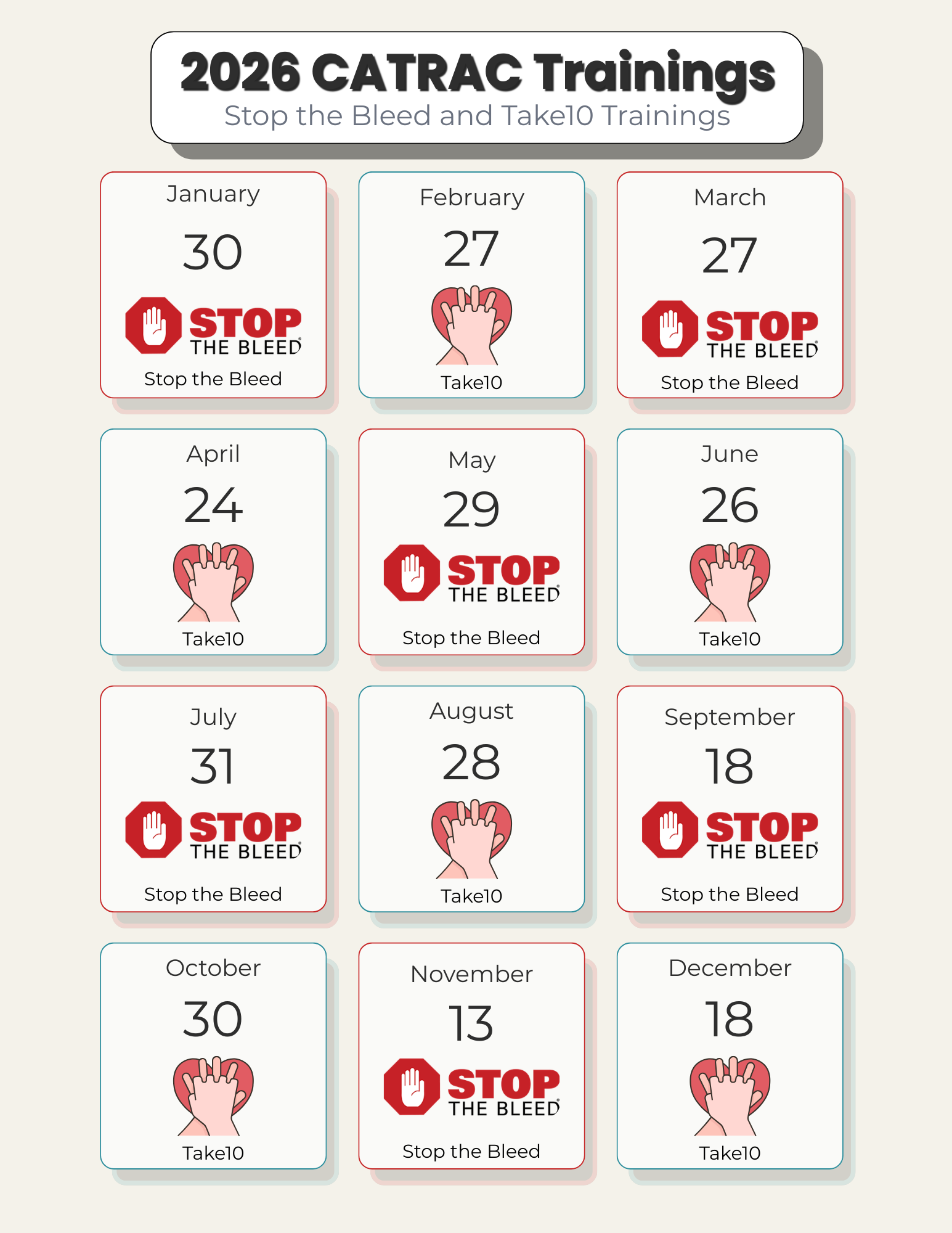 If you are eligible to teach Stop the Bleed, please reach out to the CATRAC Training Administrator.